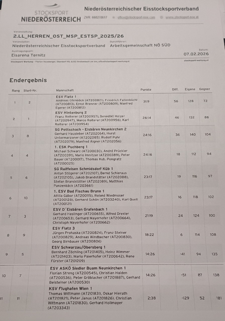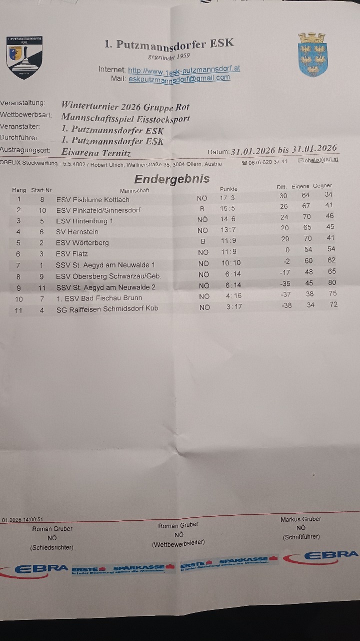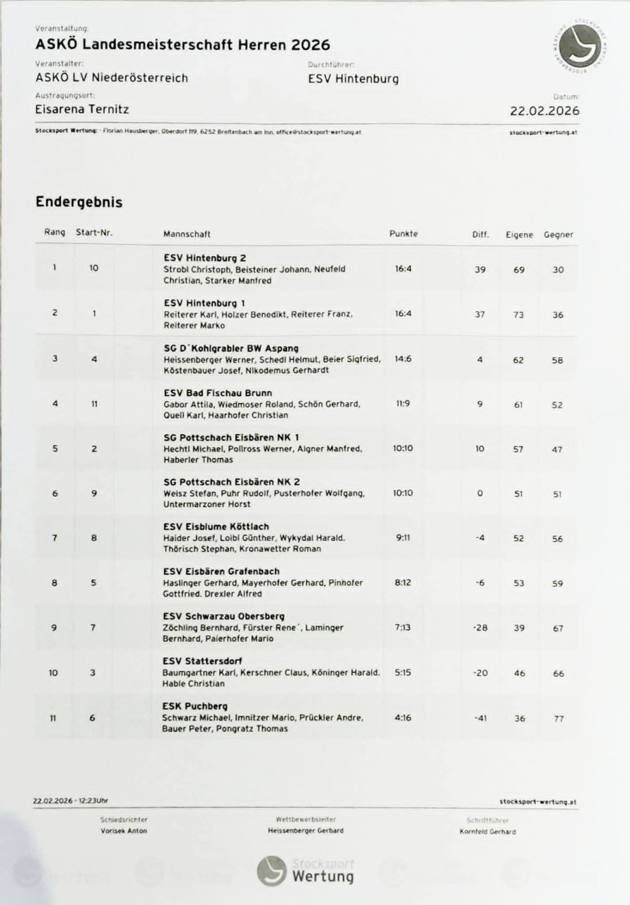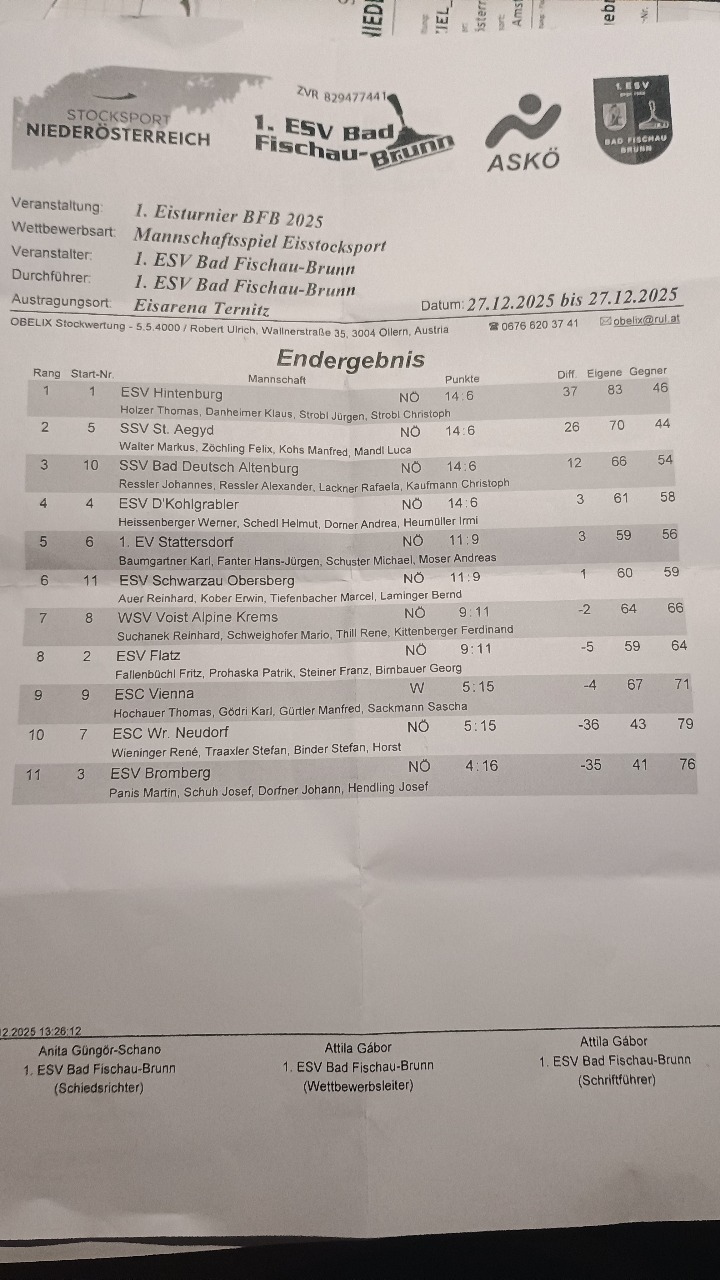 Eisturnier ESV Hintenburg Endergebnis
