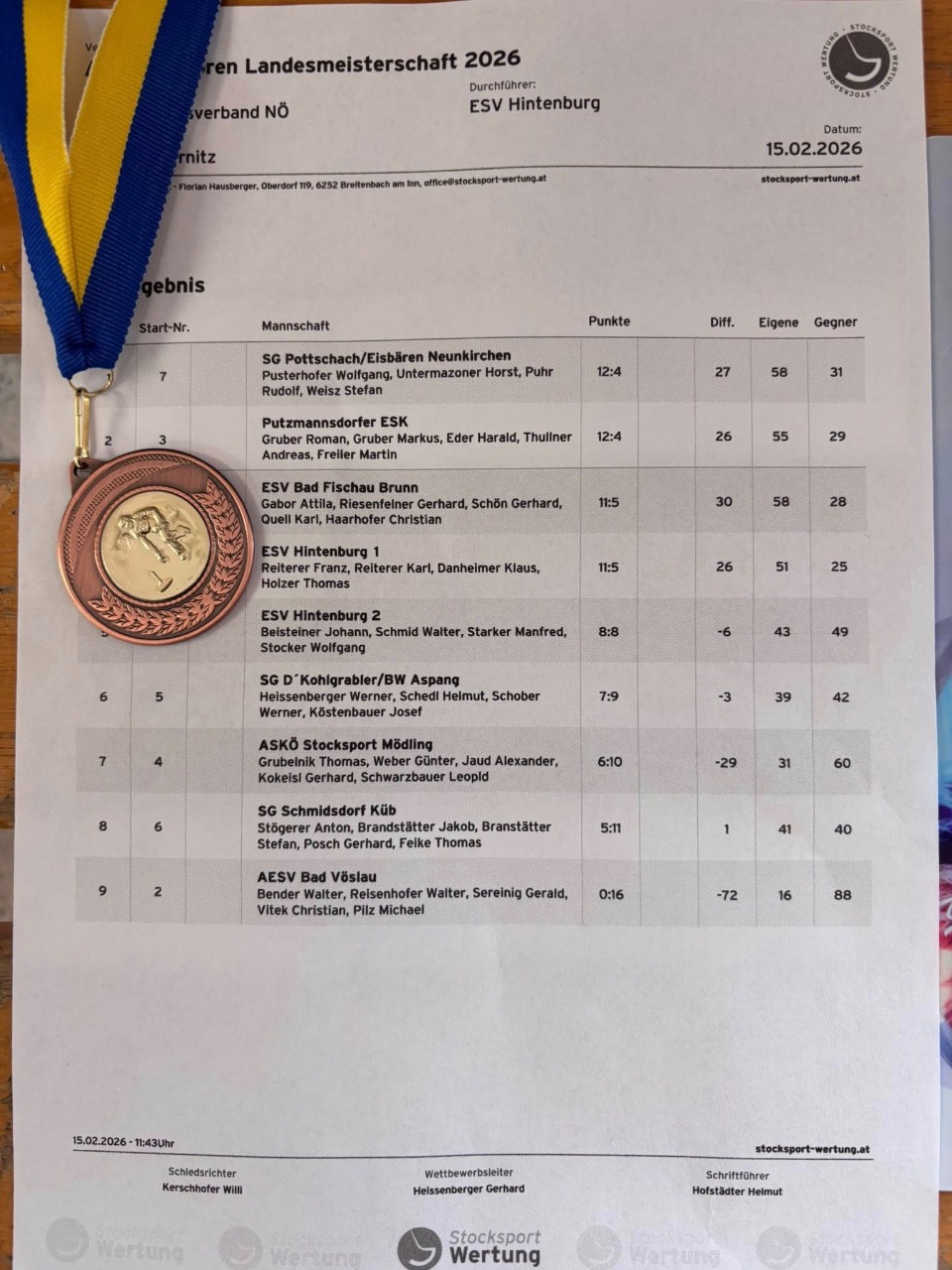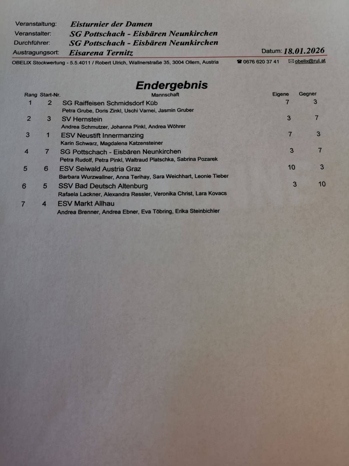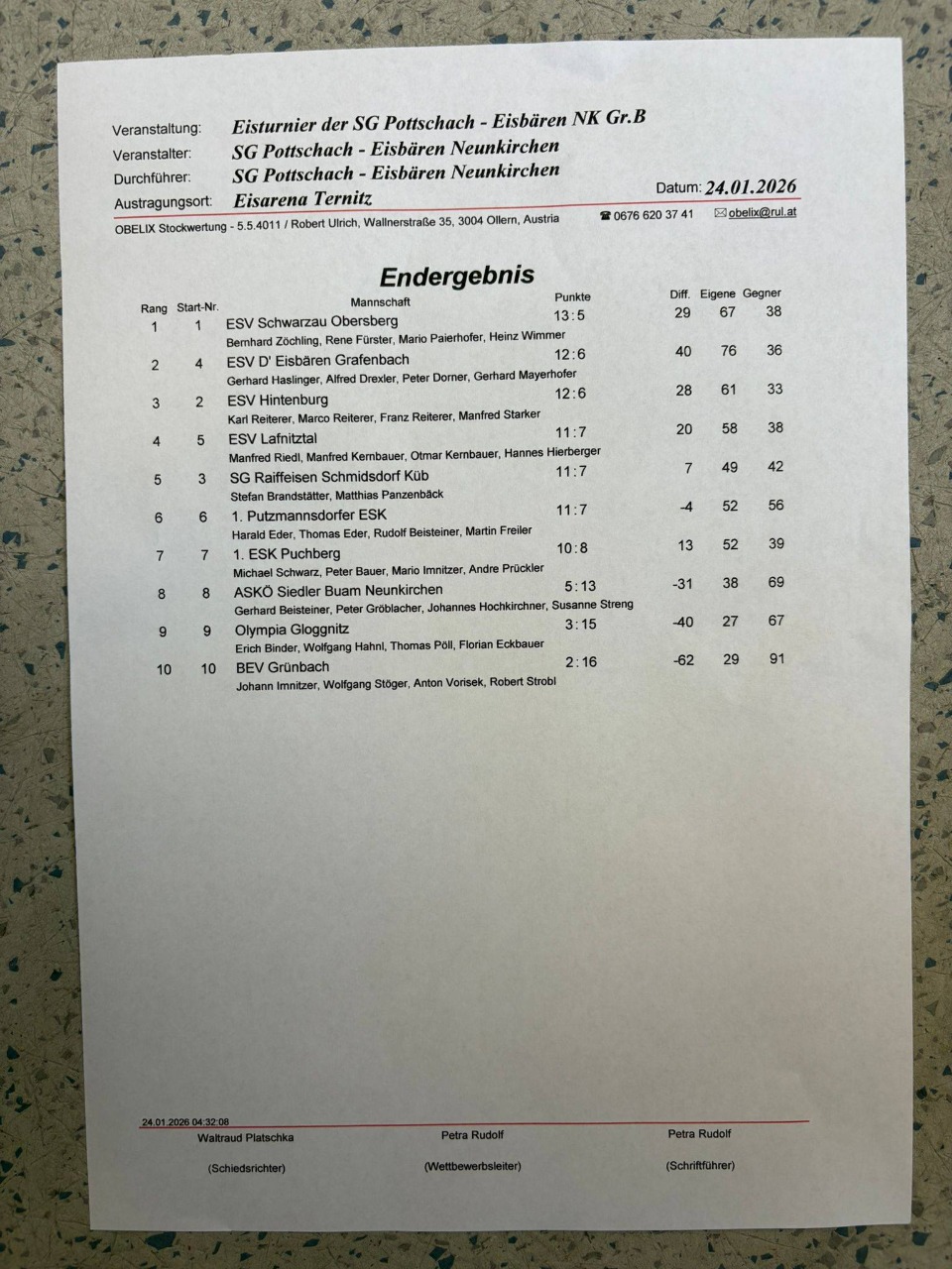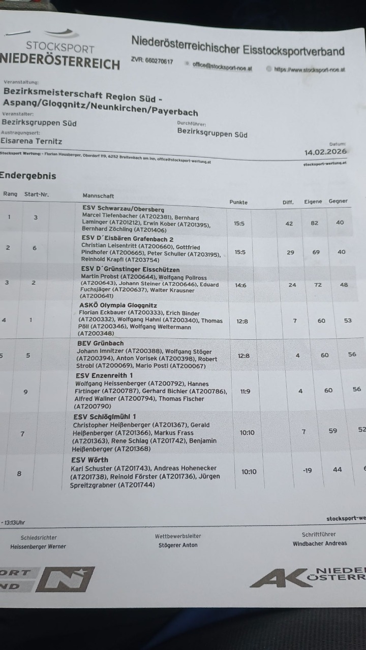 Eisturnier ESV Hintenburg Endergebnis