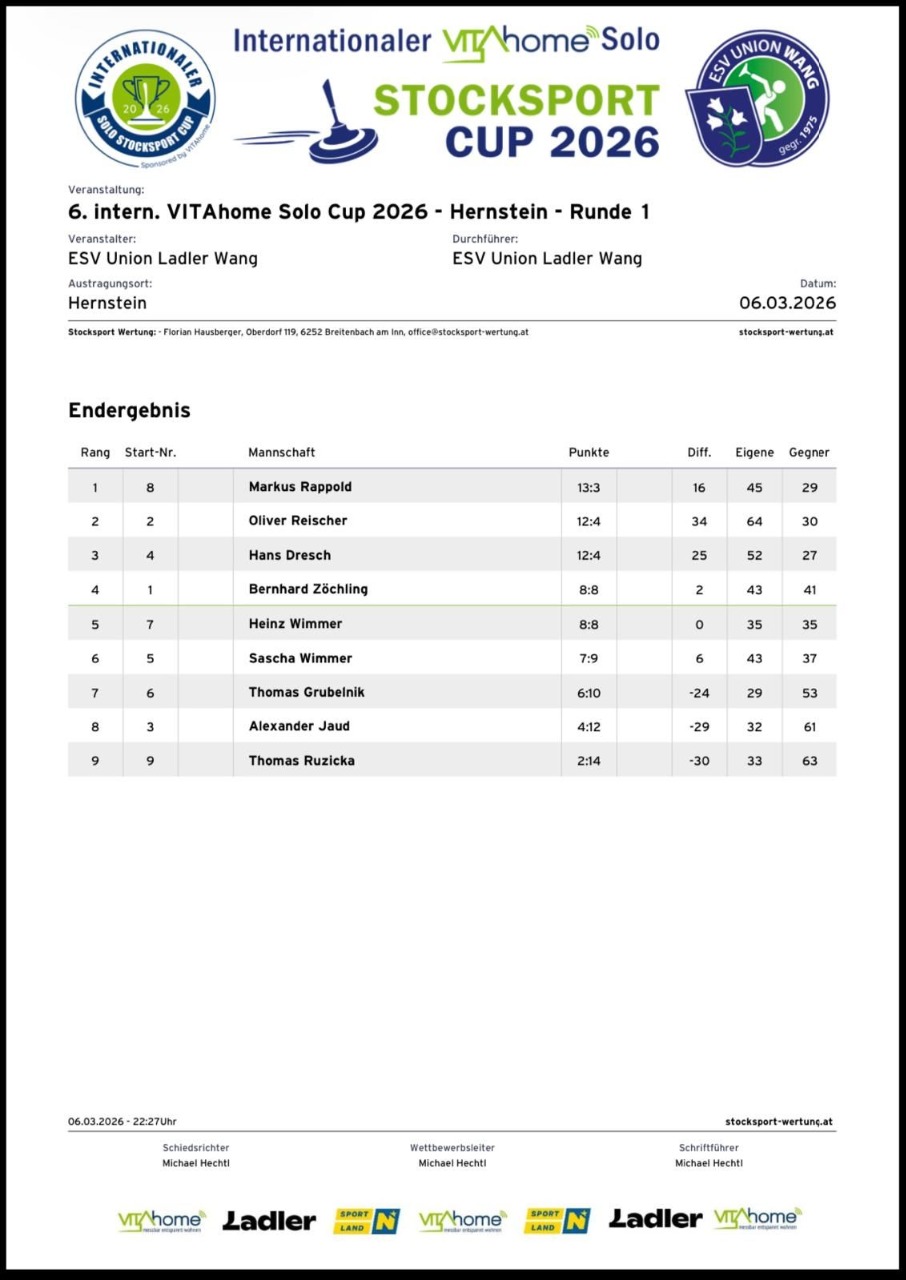 Vita Home Solocup 1.Runde Schmidsdorf Küb Damen und Herren